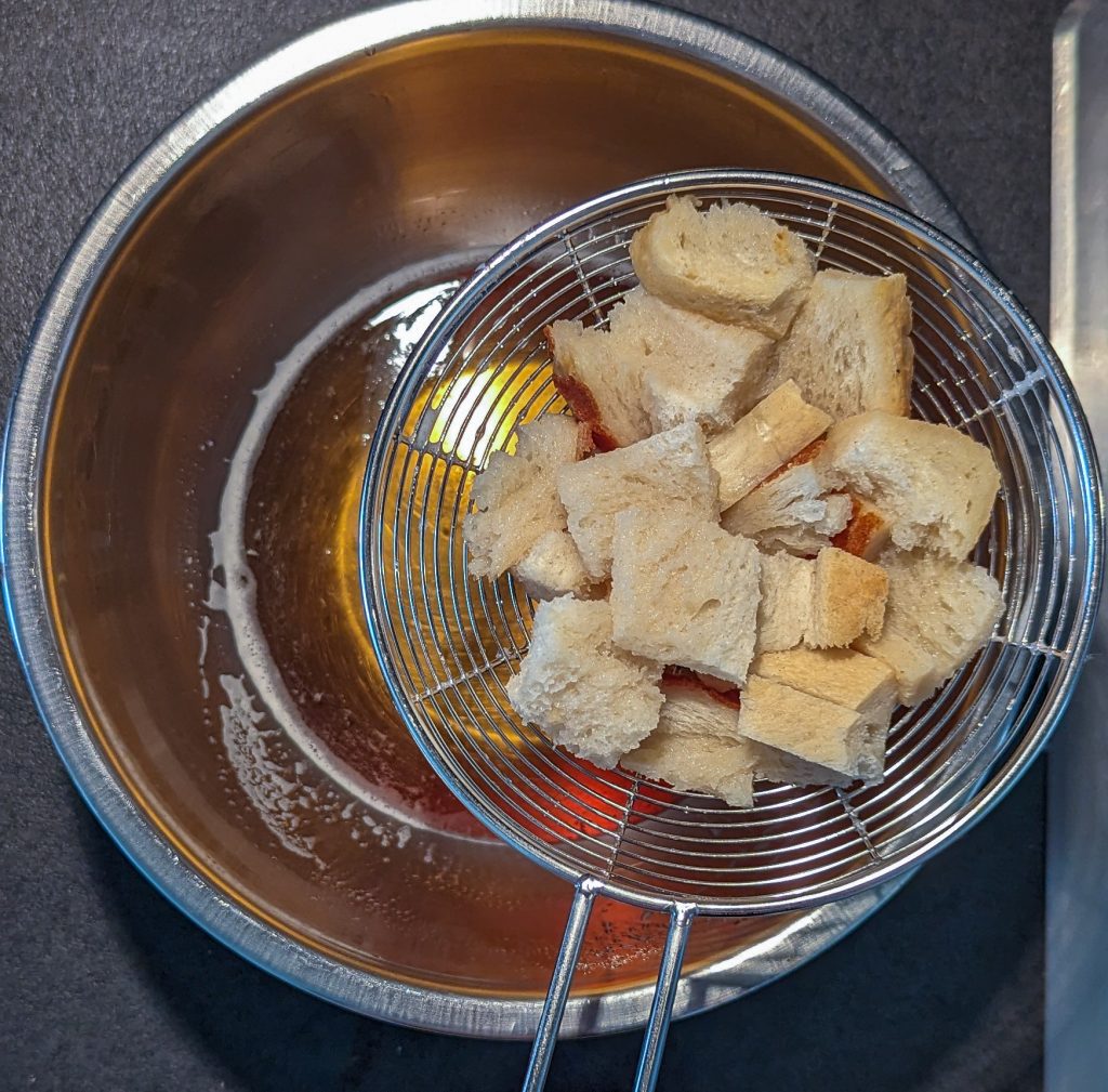 The result really was disappointing. And the best part of the dish was probably the tomato dip. While the meal really didn’t deliver, the cook felt like it was on the right track. If you had better quality white bread, and more importantly eggs and flour to make the batter into., an actual batter – the recipe could work. Sadly, we didn’t have the ingredients to try it out, and had to leave this recipe as a massive loss.