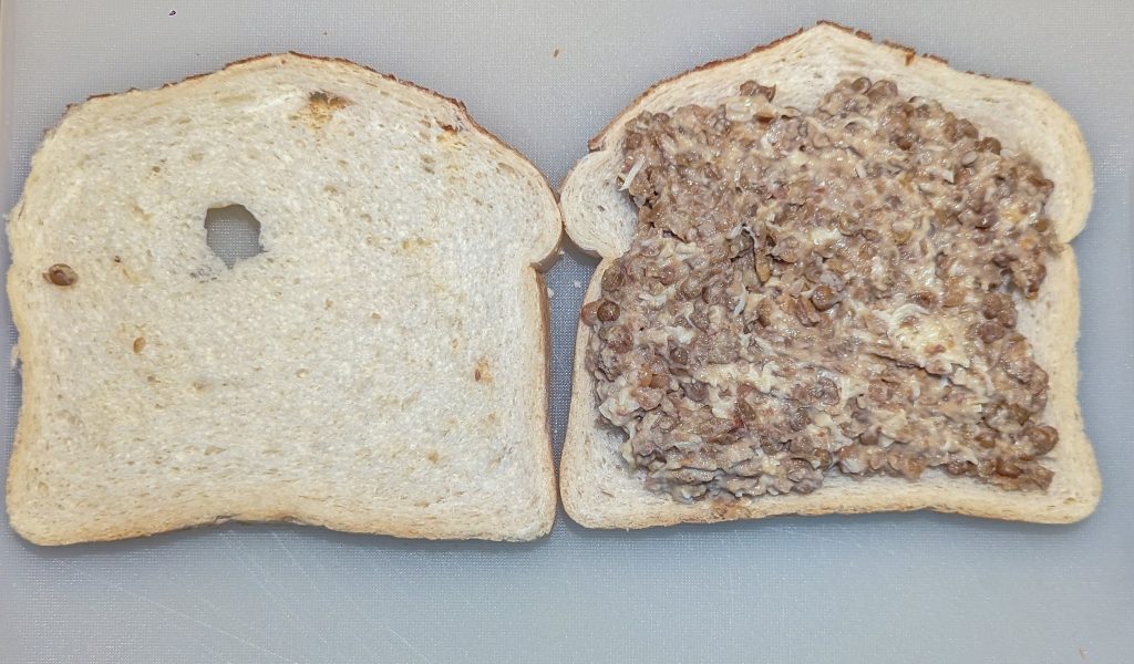 - Ingredients: White sliced bread, lentils, cheese, mayo (optional)